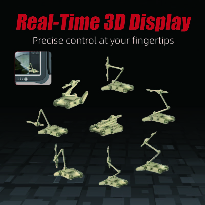 Since bomb disposal robots often operate beyond the line of sight during missions, real-time information about the angles and spatial positions of the robot's joints is crucial for the operators. The REOD450 uses high-speed links and advanced computer technology to not only achieve real-time feedback of the robot's status information but also to employ leading 3D virtual display technology for remote real-time display of the robot's 3D status. This makes the robot feel "close at hand" even when it is "far away," allowing for more intuitive operation.