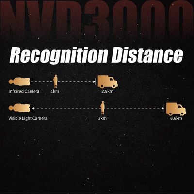 Detects human targets up to 1km and vehicles up to 2.8km with the infrared camera. The visible light camera extends the range, identifying human targets at 3km and vehicles at 6.6km, ensuring accurate target identification across varying distances and conditions.